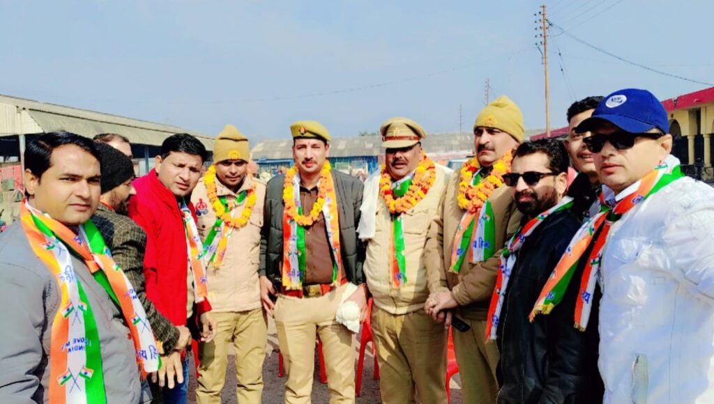 बाइक तिरंगा रैली के मंडी समिति परिसर पहुंचने पर एक विचार गोष्ठी एवं सम्मान समारोह का आयोजन किया गया। इस अवसर पर अखिल भारतीय पत्रकार सुरक्षा समिति के पदाधिकारियों ने जाब्तागंज चौकी इंचार्ज विनोद पाण्डे एवं क्राइम इंस्पेक्टर योगेन्द्र सिंह को फूल मालाएं पहनाकर एवं शॉल ओढ़ाकर सम्मानित किया।