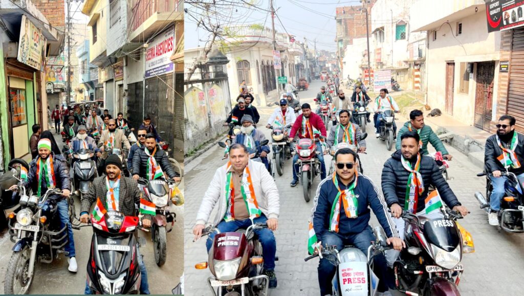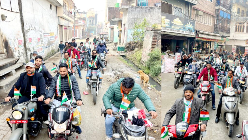 नजीबाबाद: 77वें गणतंत्र दिवस के अवसर पर अखिल भारतीय पत्रकार सुरक्षा समिति द्वारा नजीबाबाद नगर में देशभक्ति से ओतप्रोत बाइक तिरंगा रैली का आयोजन किया गया। हर साल की तरह इस वर्ष भी रैली “भारत माता की जय” और “हिंदुस्तान जिंदाबाद” के नारों के साथ निकाली गई, जिससे पूरे नगर में राष्ट्रभक्ति का माहौल देखने को मिला।