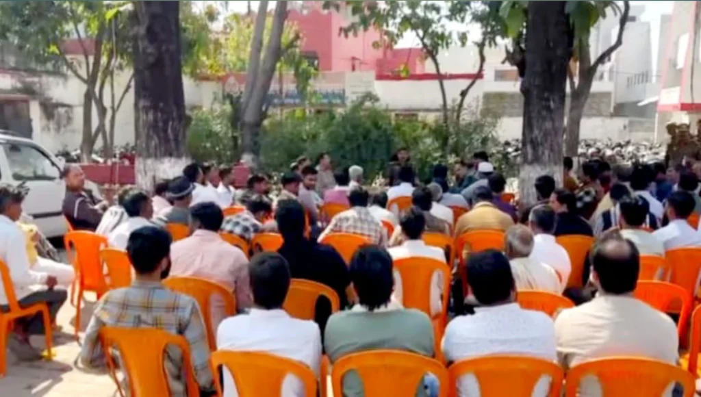 नजीबाबाद। आगामी त्योहारों के मद्देनज़र रविवार को थाना प्रांगण में शांति समिति की बैठक आयोजित की गई, जिसमें नगर के जनप्रतिनिधि, समाजसेवी एवं गणमान्य लोग उपस्थित रहे। बैठक की अध्यक्षता थाना अध्यक्ष राहुल सिंह ने की।